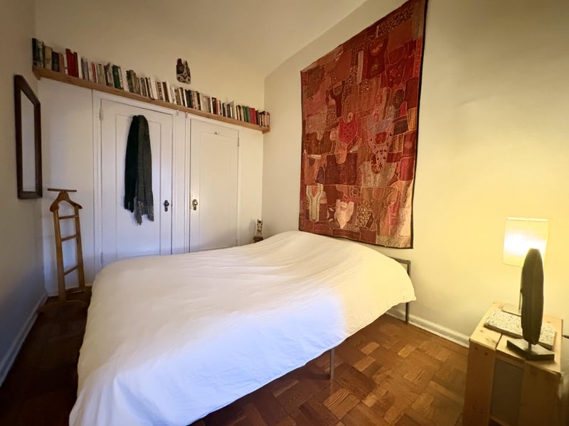 • 1.5 bedroom apartment on the 2nd floor (walk up) • Apartment oriented South, facing the sky and a very quiet backyard • Bedroom has a queen size bed, large windows, closet and AC unit • Separate office space with a comfortable desk setup to work from home, with an Apple monitor and a sofa • High ceilings & wood floors • Kitchen with gas range, cookware, countertop toaster oven and blender • Bathroom with a bathtub/shower and toilet • Wifi and HD TV • Fully furnished, kept clean and uncluttered • 700 sq/ft – 65 sq/m • Very well kept, small (only 8 units), friendly and quiet 1950’s building on a quiet, tree-lined block