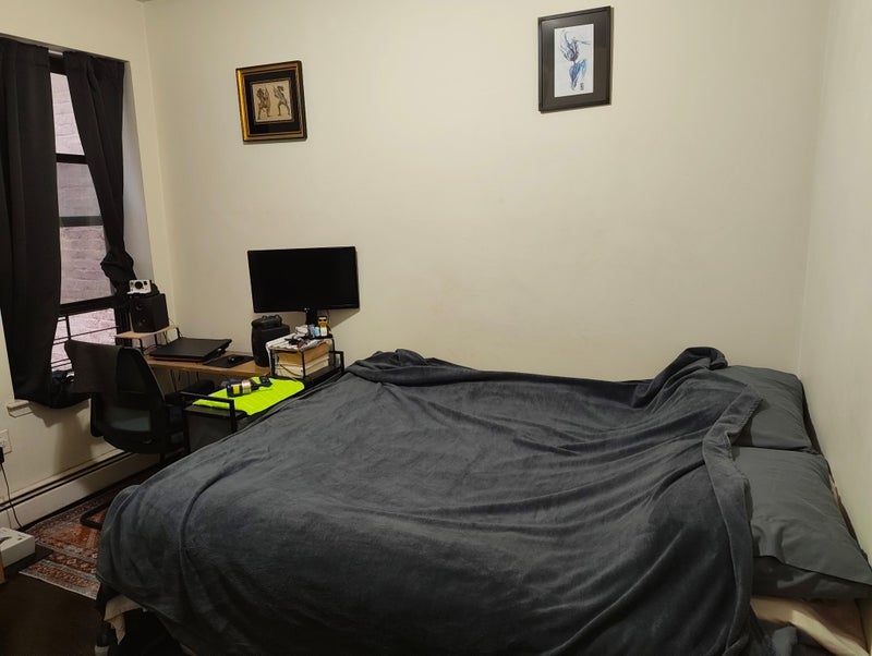 Rent: The room is $1200/month. Has a closet. Fits a full bed and desk. Utilities are separate, split three ways. Tends to be under $100/month for national grid, con ed, and internet. We rotate purchasing of: dish soap, paper towels, toilet paper, hand soap.