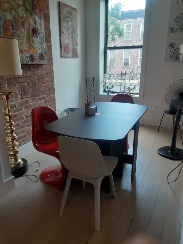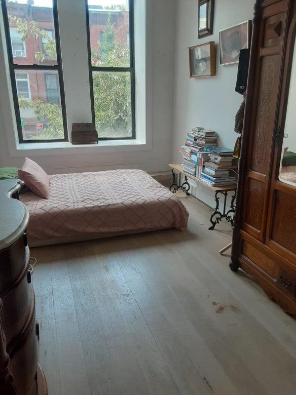 Room for rent available in Bedford Stuyvesant BK. 2nd floor, 650 sq ft, rail road style apartment with two bedrooms, one bathroom, shared kitchen, shared living space, with one furnished 180 sq ft room for rent. Street facing room with lots of light and wood floors. Roommate is there part time and has one dogs. Renter should have no pets, be clean and refrain from having large gatherings or parties. Building laundry machine available in basement. Utilities and WiFi included in rent. Lively community and neighborhood close to the Utica Av A C trains and Myrtle Av M J Z trains. There are excellent restaurants in the vicinity: Chez Oscar, Trade Room and Saraghina, two close grocery shops, and multiple coffee shops and bars. Rent is $1,300 a month with utilities and WiFi included. Only available from March 24th to April 30th. Requires $650 deposit, in person or online interview with roommate, references. Upon move out there is a $100 cleaning fee. Open to couples for a increase rent to $1600 and deposit. Security deposit and rent is due on move in day.