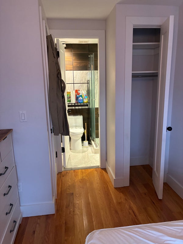 About the room: The room is cozy, quiet, and gets great natural light. Since it doesn’t face the street, it stays especially peaceful. The room comes furnished with a full-size bed and mattress, dresser, bedside table, and wardrobe rack. It also has a private en suite bathroom.