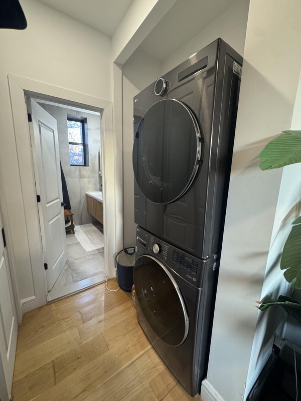The apartment includes in-unit washer/dryer, dishwasher, and central air conditioning. It’s a 3rd floor walk-up. The fourth bedroom is set up as a shared work-from-home office, which is great if you’re hybrid or remote.
