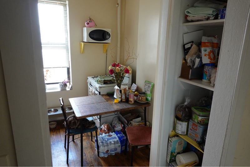 Looking for a long-term roommate for a furnished room in a 4th-floor walk-up. I have a dog and a cat, so must be ok with pets additionally no new pets allowed. No couples, no smoking, cannot bring people over.