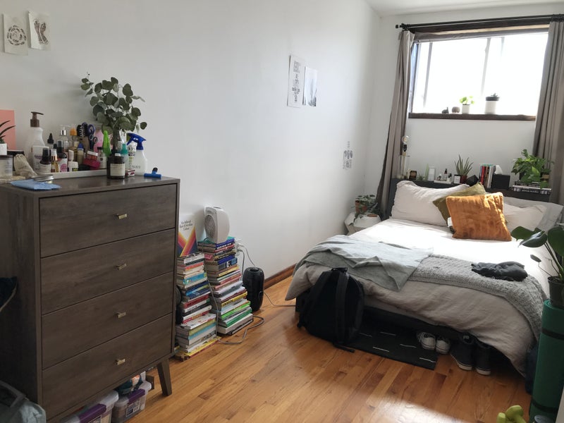 Hi everybody, I’m looking for somebody mature and respectful to rent the 2nd bedroom in my 2BR apartment. It’s a large room with beautiful daylight and will fit a queen size bed, a desk and plenty of other furniture without feeling crowded. Top floor ( 4th floor walk up!) of an old school brownstone type building on a quiet residential block just off Franklin ave and Fulton street, with the A express train ( and C and shuttle) only 1/2 block away.