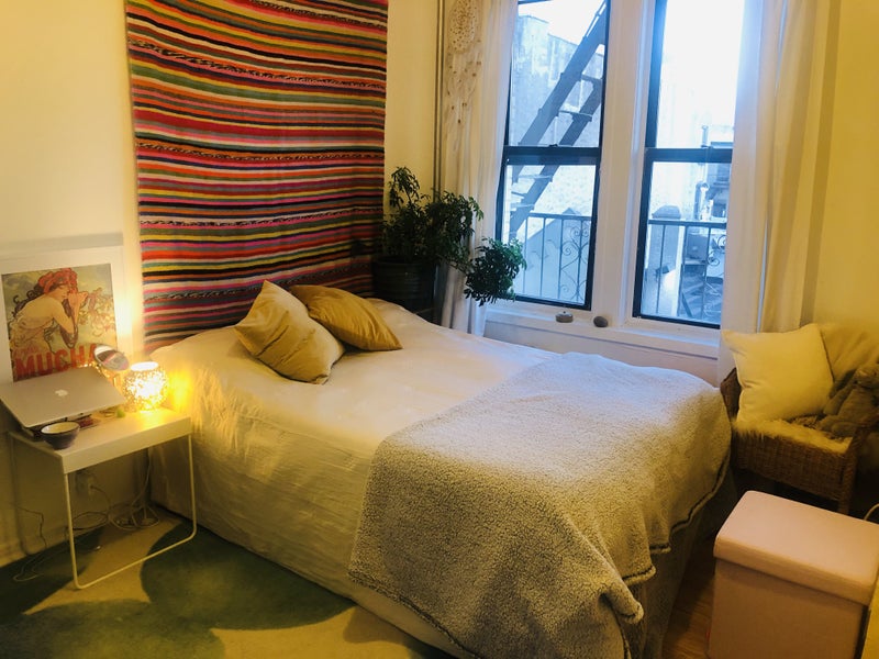 Super cute fully furnished apartment in an old building. The room is furnished with a simple minimal feel and has great light. It is a great sized room with rail and storage space under the bed and a lovely desk/work area. It is mostly very quiet aside from a little noise at the weekends, but never past 12am. The bathroom is small with a deep claw foot bath and one sink in the kitchen area, perfect for most peoples needs and so cozy.. I’ve lived in the building 4 years and love it and just love the location. I will be your roommate some of the time but mostly traveling and will rent the other room out also. I am very selective with whom I chose to stay because I love and respect my landlord and my apartment highly. I would like a quiet, clean professional or student who is low key, kind and honest. I get along with most people and so far, all my wonderful guests.