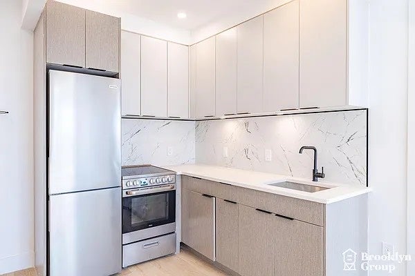 Amenities: • Central A/C • High Ceilings • Hardwood Floors • Video Intercom • Elevator • Natural Light in Living Area • Laundry in building • Bike storage • Gym • Wheelchair Accessible • Lounge • Private parking • Skyline view from roof • Shared workspace • Public Wifi • Outdoor Space • Roof access • Eat In Kitchen • Stainless Steel Appliances • Stone countertops