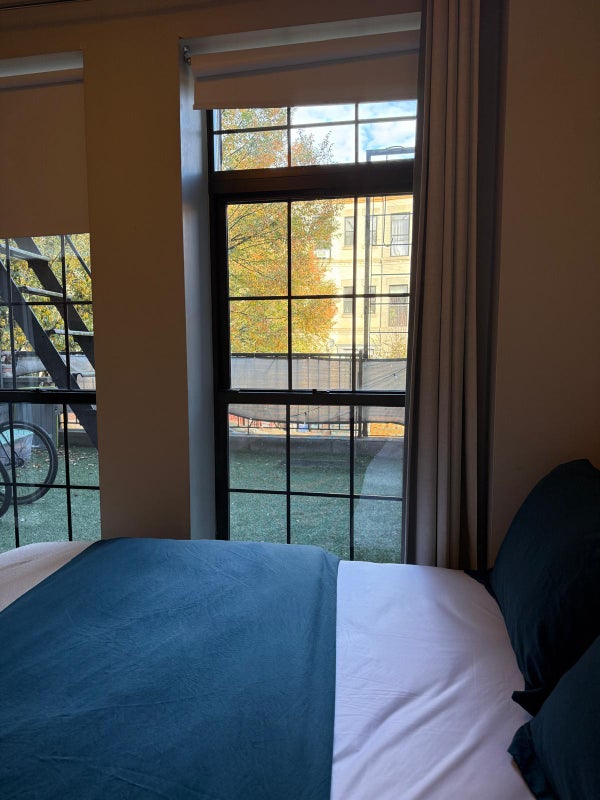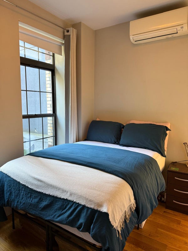 - Spacious bedroom with large windows & ample closet space - Natural light - Modern kitchen with stainless steel appliances - Bathroom with full tub & shower - Bedroom has blinds and black out curtains - Exposed brick walls & hardwood flooring - Central air and heat - Video intercom system - Massive private deck off the living room - Furnished or unfurnished with a brand new bed and sofa