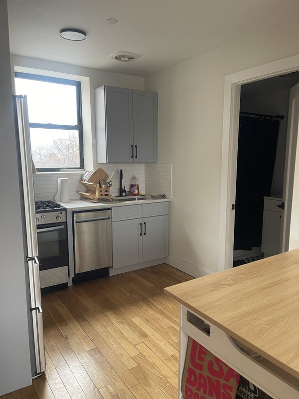 Offering a 6-month sublet in a renovated 2-bedroom apartment in Bed-Stuy, 4 blocks from the Myrtle/Broadway J/M/Z trains (about 20 minutes to downtown Manhattan). Elevator building with laundry, gym, bike storage, and a communal co-working space. Quiet residential street with street parking available.