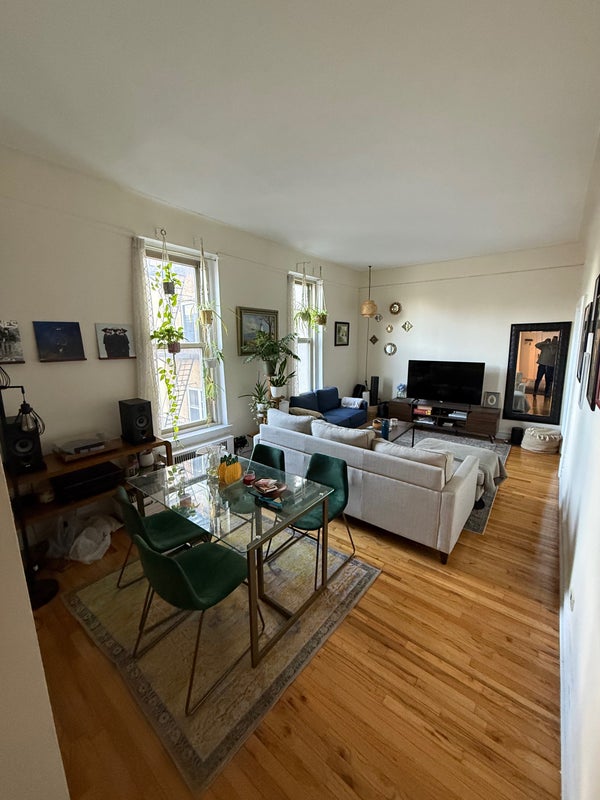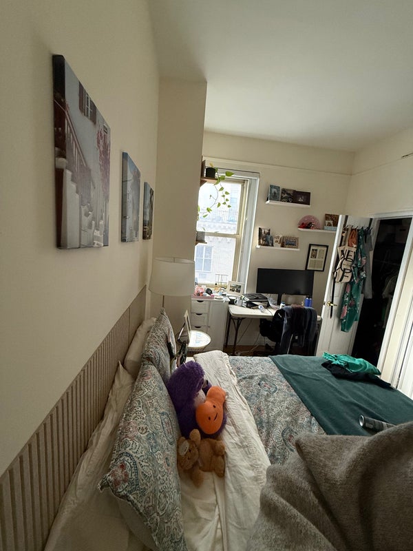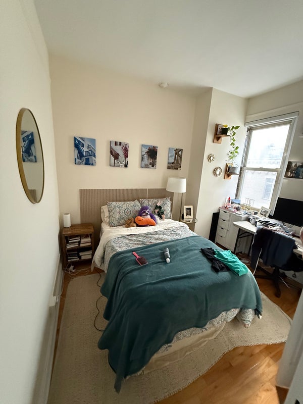 The apartment is a 3 bed/ 2 bath and around 1100 sq ft total. You would be sharing a bathroom with me! The room can fit a queen size bed, a desk, and has 2 closets. There is a dishwasher in unit and laundry in building. It is < 5 mins to Clark St (2,3) and High St (A, C), and the 4, 5, and R are also within 10 mins. It is a 6th floor apartment, but there is an elevator in the building. There are windows in every room, so the apartment gets a ton of natural light.