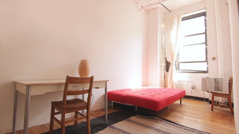 Furnished, 12ft ceiling, huge window, clean, quite, 2nd floor, shared kitchen and big bathroom.