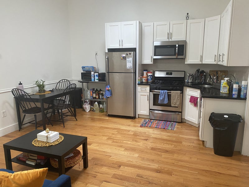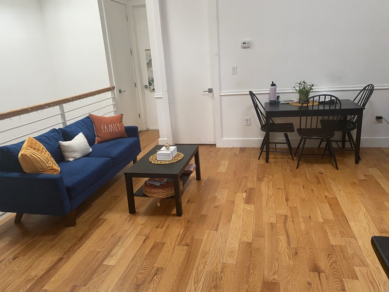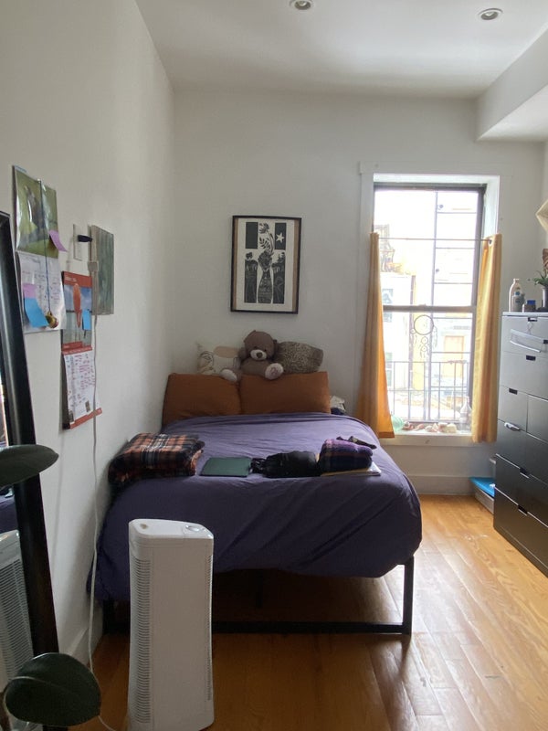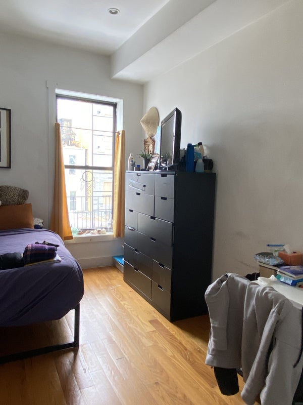 The room is fairly large- we can fit our dressers in the closet. And the living room and bathroom are already furnished. I work part time as an actor and babysitter. Jalynn works at an animal non profit and wants to host animals occasionally. We're looking for someone who is considerate, tidy (we don't like dishes in the sink, and we make sure the floors get swept and mopped once a week, etc), and can FOR SURE pay the rent. We'll probably ask about your employment status. We'll need you to put the electric bill in your name, as I have the wifi and Jalynn has the gas. But besides that we're pretty lax. We're ten minutes from the J train and 12 minutes from the L. There's a couple grocery stores in the area, parks, places to eat, etc.