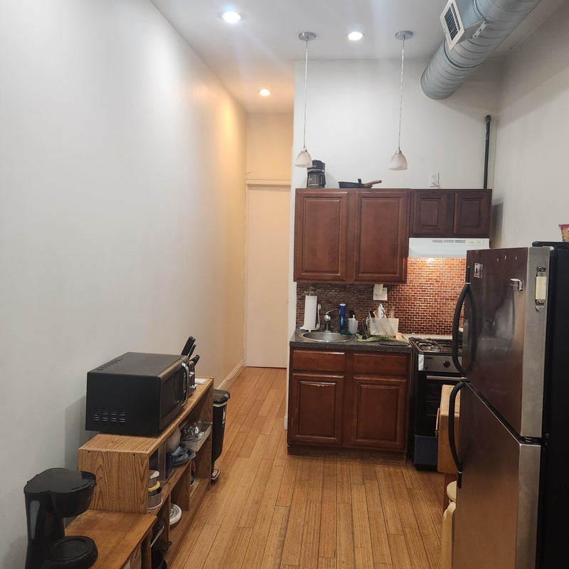 Hi there, I'm looking for a new roommate for June 1st.. congenial easy going mellow quiet working creative straight guy here looking for someone who's mellow and easy going too, I'm looking obviously for someone respectful, nice, not a crazy party type, no drama, someone who knows paying the rent and utilities on time, chips in with the usual easy apt chores time to time (keeping things reasonably clean and orderly) someone with a job, someone who understands about quiet times, has their own thing going on though of course yes we can chat whenever we see each other. And oh the rooms are on opposite ends of the apartment so we won't be sharing a wall or anything like that.. more privacy and quiet for each of us. Between the two rooms there's a nice distance that includes the living room/kitchen area and the bathroom off to the side in a mini hallway. I don't hang out in the middle area that much apart from making quick meals, usually quick easy dinners.