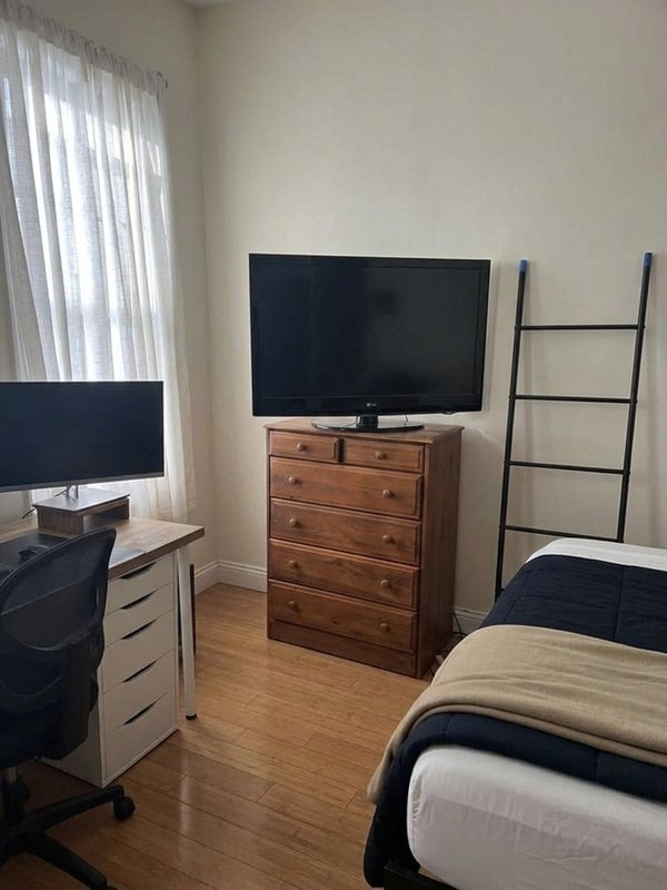 Room is a nice size room, sunlight, decent closet, 2 windows, Apt is on top floor so no one above the apt with stepping and other sounds. The room comes unfurnished. Also for some of the photos I used a photo editor to clear out my current roommate's things to give you a better idea of what the room looks like with less clutter, just fyi!