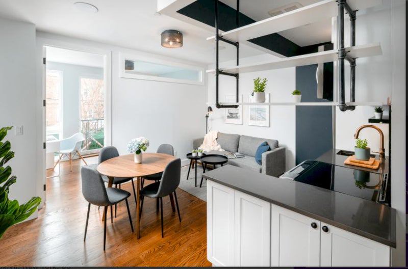 - With hardwood flooring, there is a spacious living room with a couch, TV for relaxing, microwave and dishwasher.