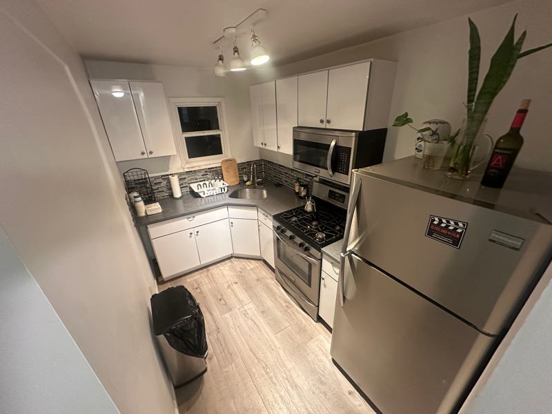 Bright and spacious studio with SHARED kitchen and bathroom. Steps from the B B and Bbuses and the J, M, and L trains—only minutes to the city. Grocery, Laundry mat, Bars, Pizza shops, Coffee shops, Restaurants, hardware stores, etc. etc just around the corner. Includes hardwood floors, plenty of sunlight, ample closet space, and stainless steel appliances. Modern SHARED kitchen and bathroom. All utilities and WiFi included. Credit, income, and background check required.
