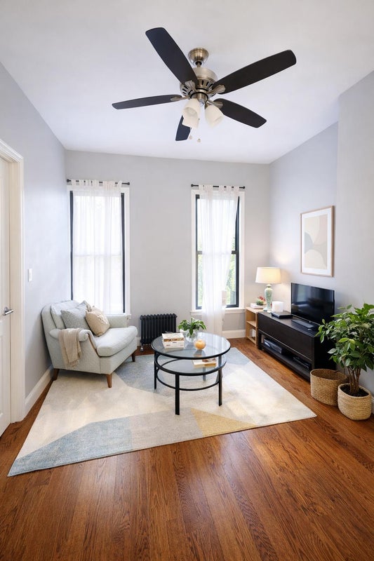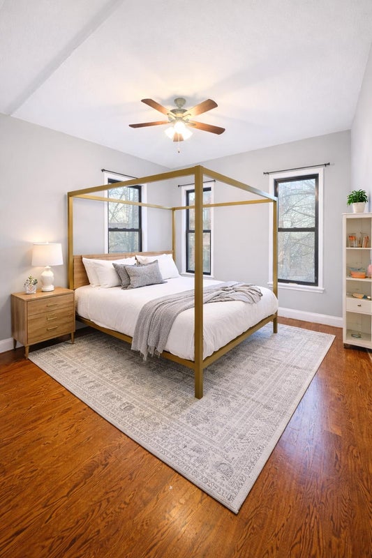 Lovely, bright room with large window and hardwood floor.