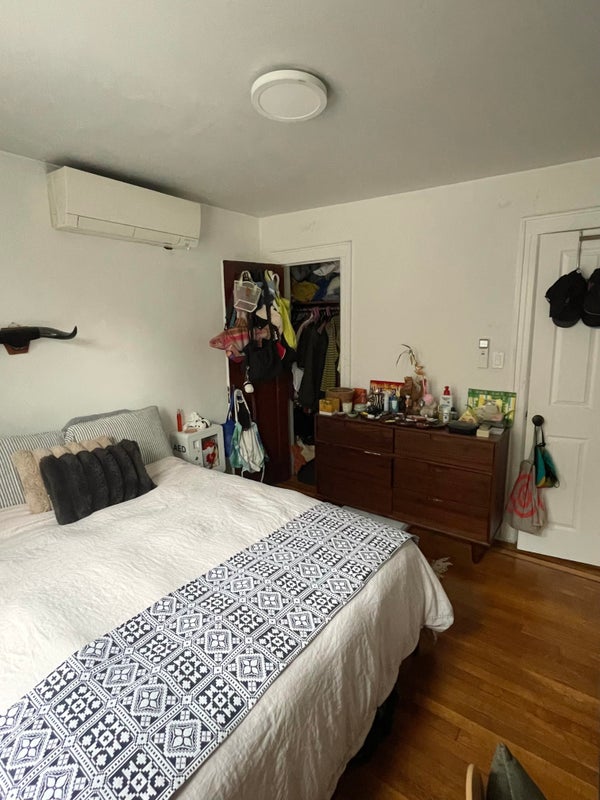 • $1,625/month + utilities (utilities average about $150) • Large bedroom with closet (queen bed shown in photos) • In-unit laundry + dishwasher + every kitchen appliance • Built-in heating & AC in every room • 3 additional storage closets in the apartment • Large shared living area • Front porch • Great landlord • Easy street parking • 4/20 friendly • One small dog already in the space, can't welcome any more pets. Location: 5-minute walk to Myrtle–Broadway J/M, Central Ave M, and Kosciuszko J 15-minute walk to Morgan L About Me: I’m a 30-year-old photographer who travels frequently for work. I’ll be away most of February and March and many spring weekends. When I’m home, I work remotely. I have a tiny Chihuahua who lives here, he mostly naps under blankets and is very sweet. I love to cook, I’m laid-back, and respectful of shared space, and I really value a peaceful, clean, and comfortable home environment. I also value making margs and going to happy hour... About You: You’re kind, communicative, clean, and excited to live in a calm, drama-free space. You care about mutual respect, good energy, and creating a home that feels easy to be in. If this feels like a good fit, I’d love to hear a little about you!