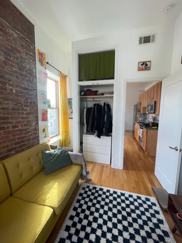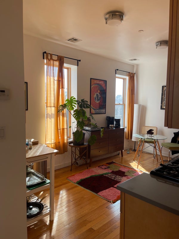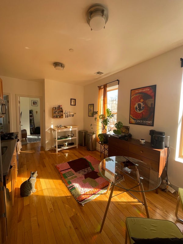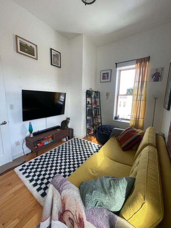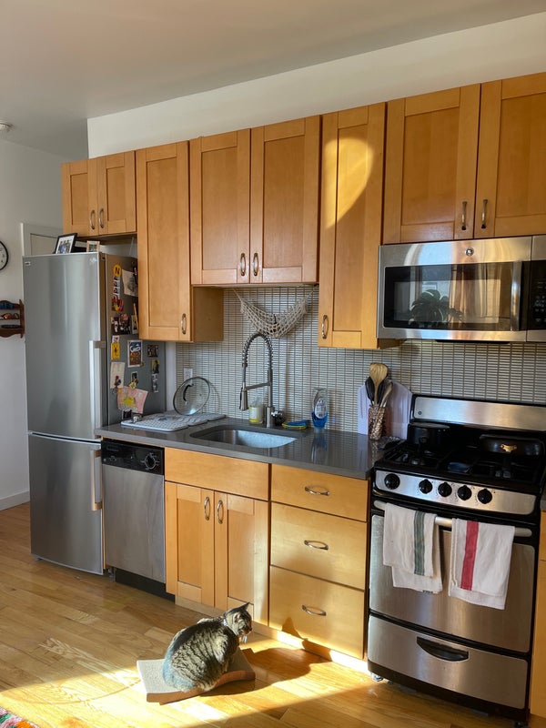 I am subletting the second room in my 2 bed/1 bath apartment on the border of Bushwick & Ridgewood (8 min walk from L train at Halsey St & 8 min walk from L/M trains on Myrtle Wyckoff). The pictures show the bedroom as a living room area but it’s a full bedroom with a door and all. The bedroom has both an East and a North facing window as it’s on the corner of our 3rd floor top story unit, so plenty of sunlight comes in all day. Large closet as well with extra storage space on top (the ceilings are super high). A little bit of exposed brick makes the room super cute and cozy. Central air and heat in the unit. Laundry is available in the basement of the apartment complex. The bathroom is shared but it’s spacious with a lot of storage for toiletries and a big bath tub with shower. No living room space but the common area is the large kitchen. The apartment is newly renovated and has a mini dishwasher, microwave, and gas stoves in the shared kitchen space. The neighborhood is residential and a 10 min walk to the heart of Ridgewood. Also about a 10 min walk to Irving Square Park. I have a really sweet and sleepy cat who is very friendly and loves being around people. I’m a very clean pet owner and would love to live with someone who values cleanliness in our shared spaces as well. Plant friendly, cat friendly. First month and deposit required. It would be awesome for someone to take the room from March 1 thru July 31 (end of lease) but am willing to do a shorter stay as well. Send me a message if you are interested in seeing the room!