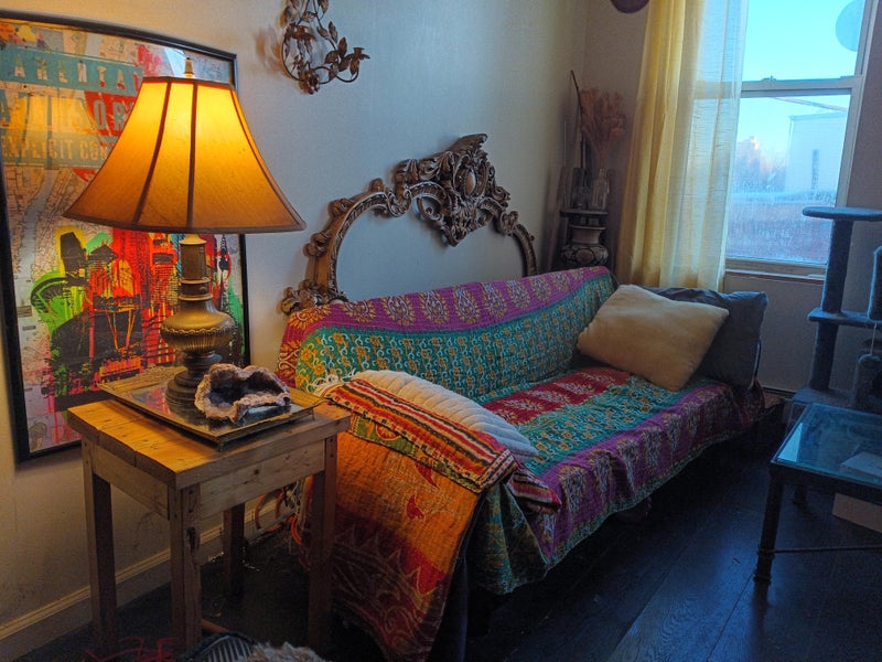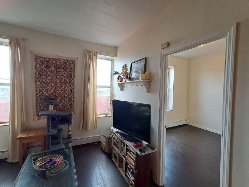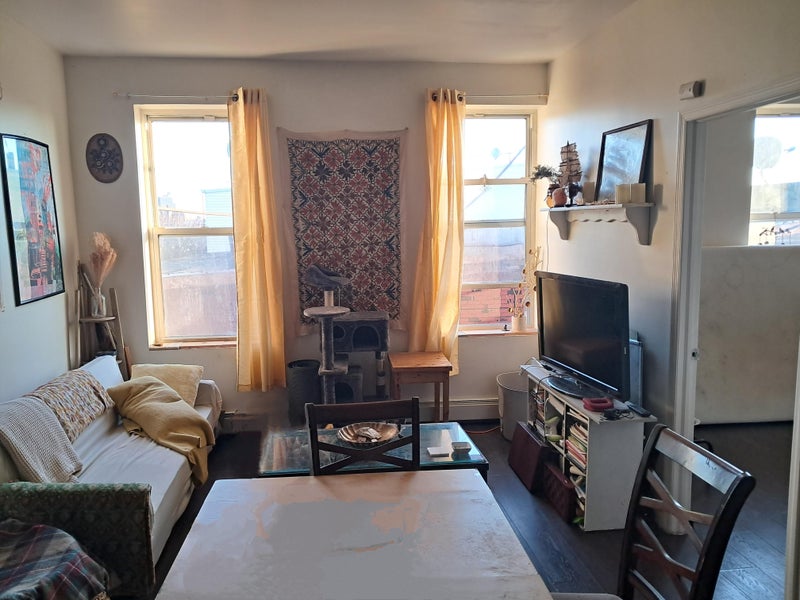 BIG ROOM in a nice apt will be available February 20th. A nice window in a good sized room with no one looking in on you. It can be empty or with the twin bunk bed frame with working space underneath. Room mates: Ollie 25, is a props stylist in the photography industry and Felix,25 your other roommate works in a Herbal teas business. There are two housecats, Juno and Gus, both are well trained and friendly, a little shy. We are looking for a quiet person. We live on the 3rd floor of a nice house , our other neighbors are friendly. $1250 pm, all utilities and wifi included Laundromat 1 block away, 3 grocery stores 3 minutes away, supermarket and pharmacy. A nice walk to the subways. Safe.