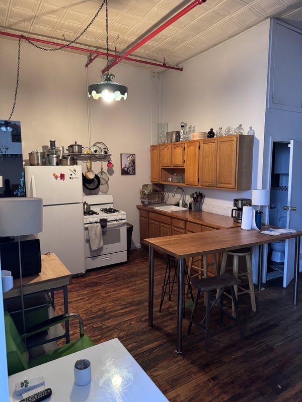 Hello! Spacious Lofted rooms available ASAP $1250+ utilities ($100-$150) 4 bed / 1 bath Laundry in building Rooftop