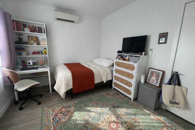 The room: Massive window and a decent sized closet. Fits a queen bed, desk, dresser, and more. (Bed pictured is a full)