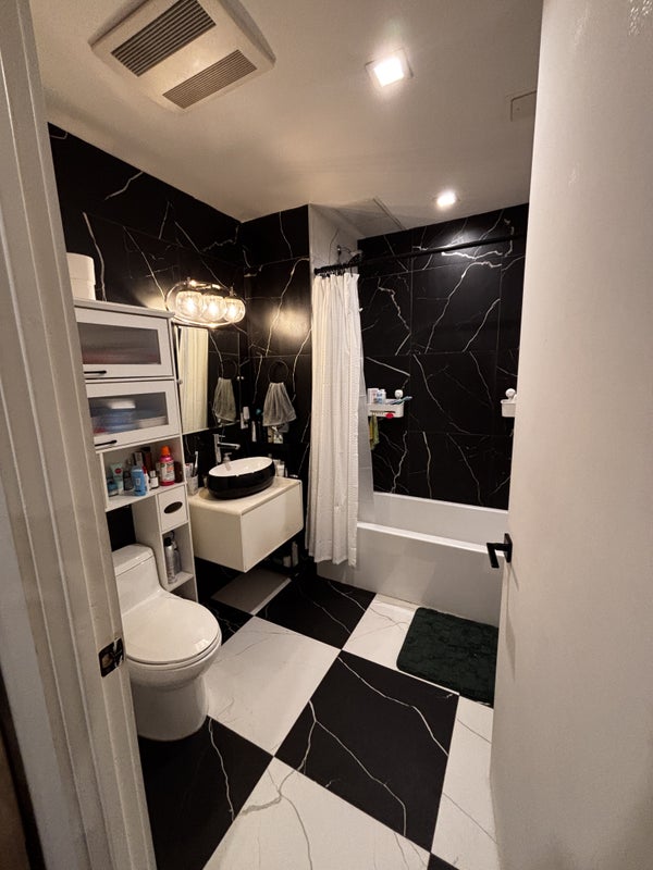 Room contains a closet and balcony access with full size windows. Can include a full size bed if needed. Bathroom is shared with the other roommate.