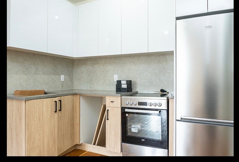 The contemporary kitchen is equipped with sleek finishes, ample storage, and full‑sized appliances—perfect for cooking and entertaining.