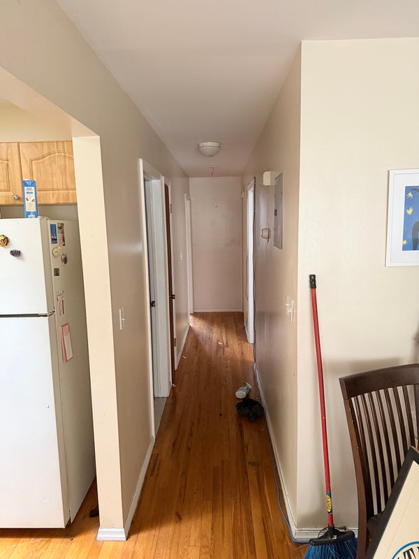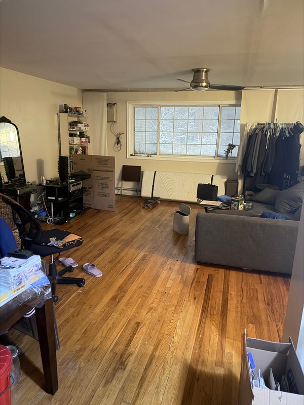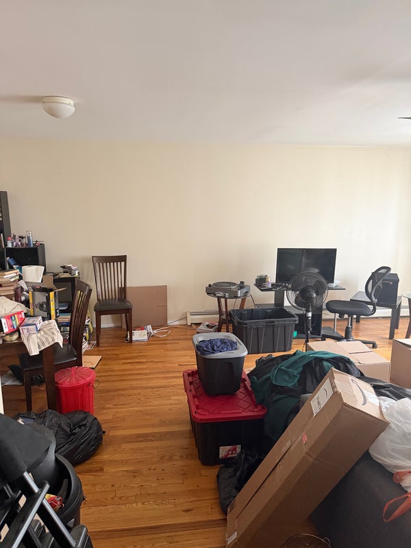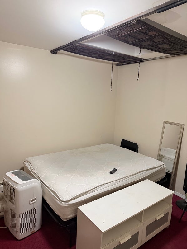 Smaller room available in a 3bed 2bath house. This bedroom will have a shared bathroom with 1 other person. Huge living room space. Kitchen with stove microwave and toaster available. J Train and L train within walking distance. Grocery store and local bars in the area along with laundry. (Excuse the appearance dealing with a move out and everything will be cleaned within a day of this post) Looking for chill individuals to occupy the space. Laid back household and great price