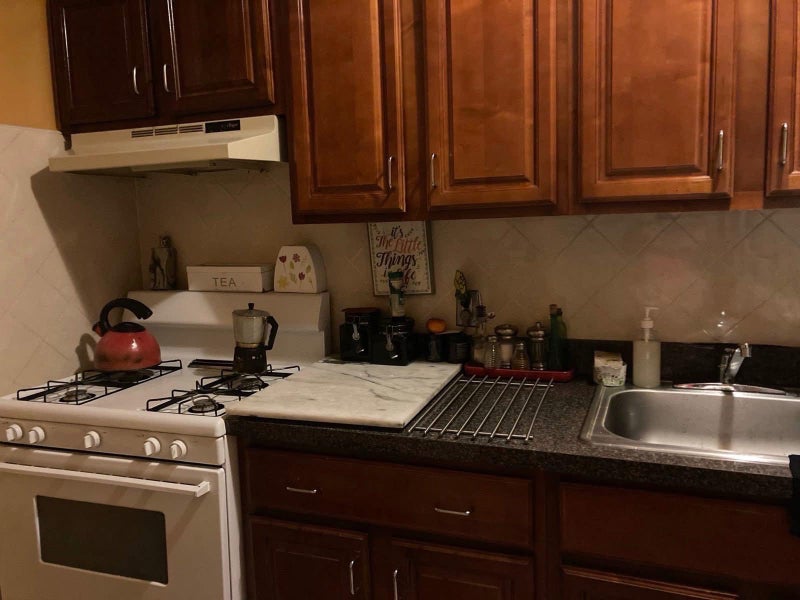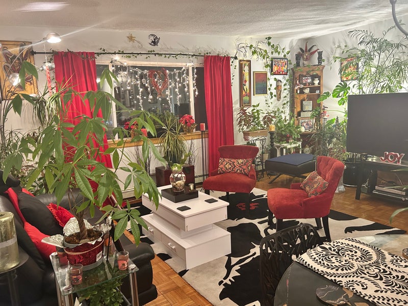 >The Apartment is spacious and bright, clean and beautifully kept::: * Large beautifully furnished Living/Dining room, with a picturesque window letting in lots of natural sun light, features many plants, and a 57 inch Samsung TV. A corridor leading to a fully equipped kitchen with skylight, bathroom, and to the bedrooms.