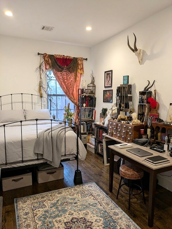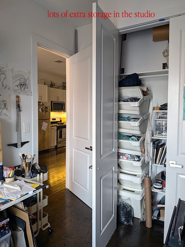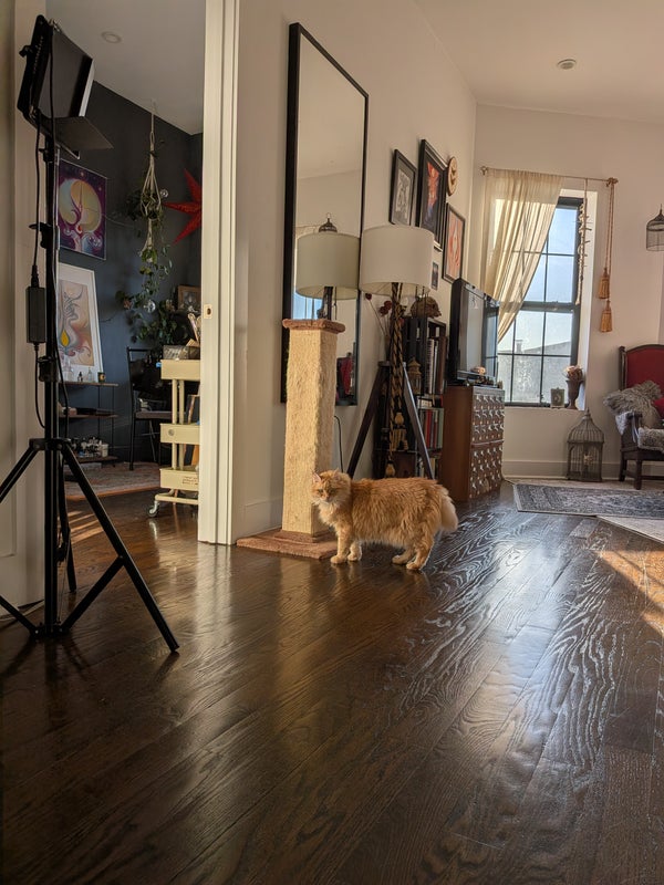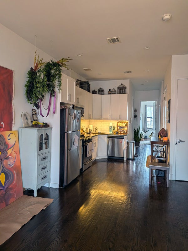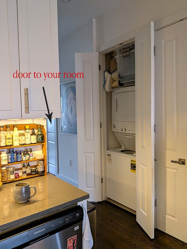 It's just me and my Siberian cat in the apartment. Your room will have a giant closet, a private bathroom, and lots of space to move around. There is also an 'office' room that we've been using as a studio for our art, you will have equal access to it - if you paint, sew, or just work from home - this is an ideal set up.