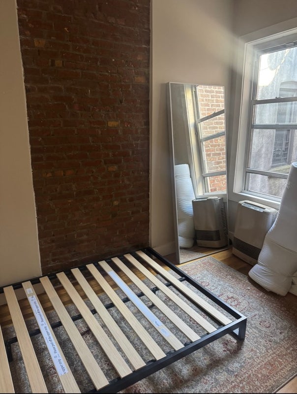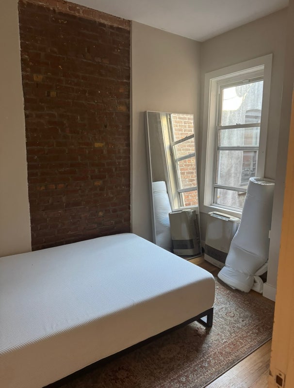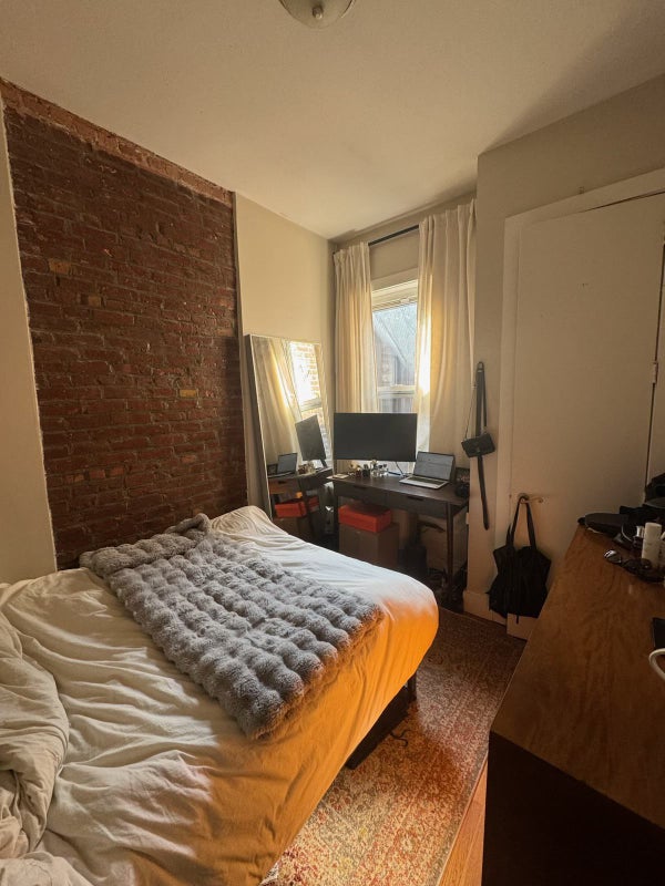 2 minute walk from the Morgan L Train stop. Very close to Maria Hernandez Park, House of Yes, L Train Vintage, and many restaurants/supermarkets. Our building has laundry, a dishwasher, a roof deck, private balcony, and free street parking. The room is available unfurnished! Move in 4/15 or 5/1. $1300 per month. 3 months sublet with the option to resign for an additional 12 months in July. 1000+sq ft apartment in a quiet building. You will live with Riis (28 M) and Marta (28 F), We are clean but outgoing and are LGBTQ friendly. We are hoping to live with a self-identifying female between 25-30. First come first serve, we need to fill this room ASAP. • $1,300 monthly (small)
