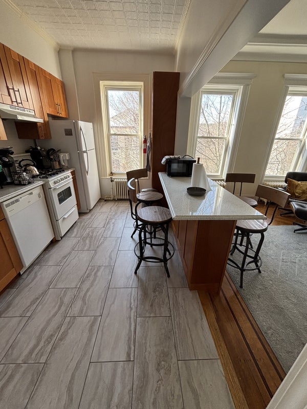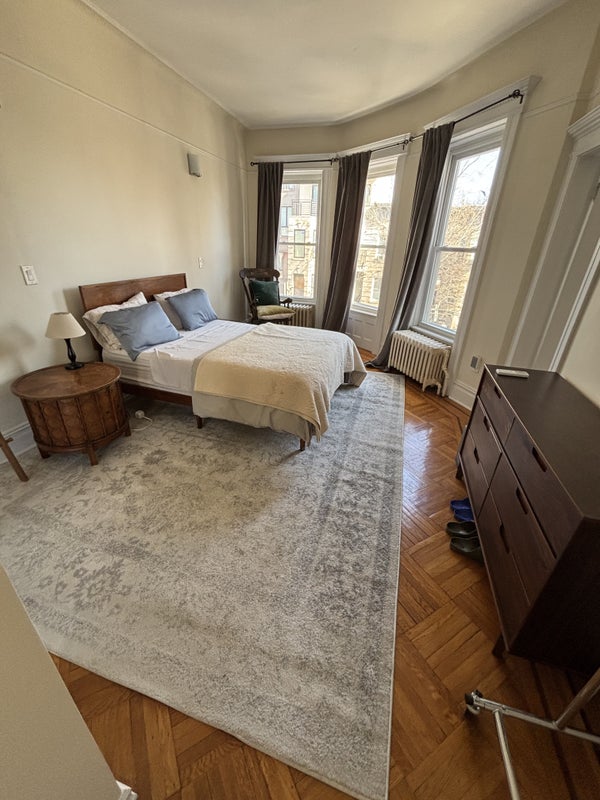 This is a lovely, light filled apartment. It has 2 large bedrooms and 2 medium sized studies. It also has 2 bathrooms. It has an in-house washer and dryer. Lots of closet space. The rent includes everything, including internet except for electricity. Very walkable neighborhood!