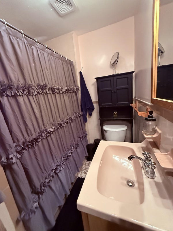 The bathroom includes a full-sized tub and is stocked with everyday essentials, making it easy to settle in comfortably from the moment you arrive.