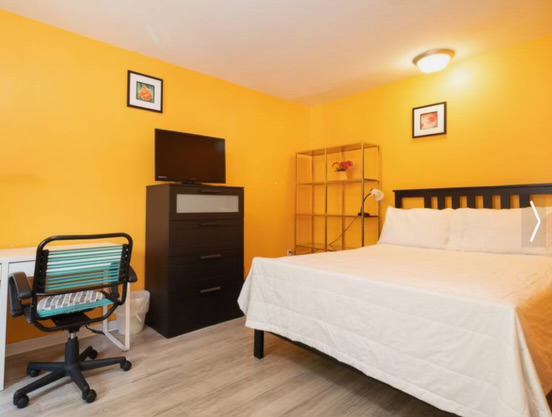 Included: All Utilities Comfortable bed and pullout sofa (full size with fine linens, and towels) Fully equipped Kitchen and bathroom. The room is extremely Clean and large Smart TV Fast Wireless internet Laundry room Workspace