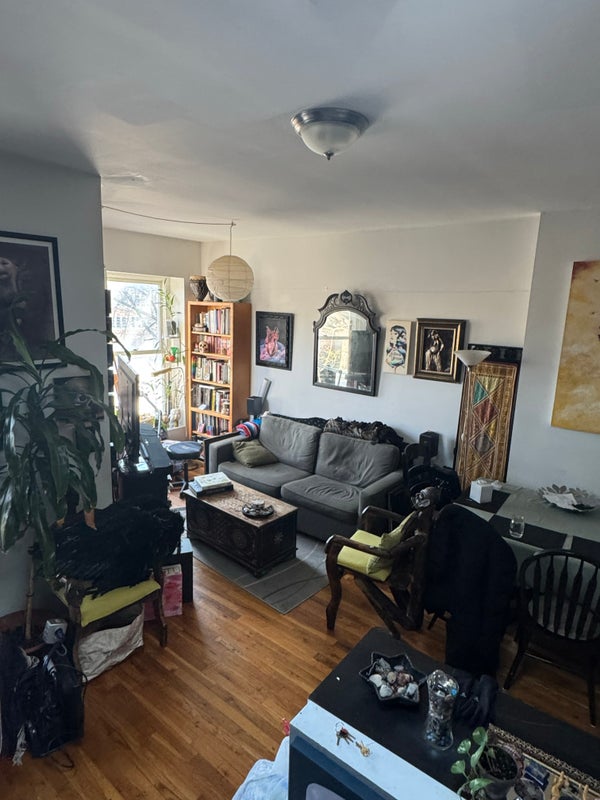 Bedroom available for move in Feb 1st. The room is on the first floor of a duplex inside a brownstone, it has a window overlooking the backyard trees. It is spacious and has a closet. The bathroom is shared with one other roommate. We are an artistic home, clean and respectful. Not a party house. Our neighborhood is Clinton Hill with G and C trains near by, lots of restaurants and stores. The Brooklyn Botanic Garden and Brooklyn Museum are within a 20 min walk. The room will be unfurnished but we do have a queen futon bed that can be used if needed. Bills are split 3 ways and are about 150 each per month. There will be a deposit of $1500 plus first month's rent to move in. Thanks for reading and let's talk to see if you are a good fit for this home!