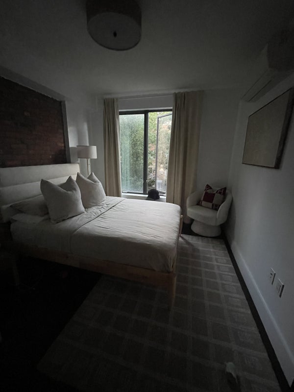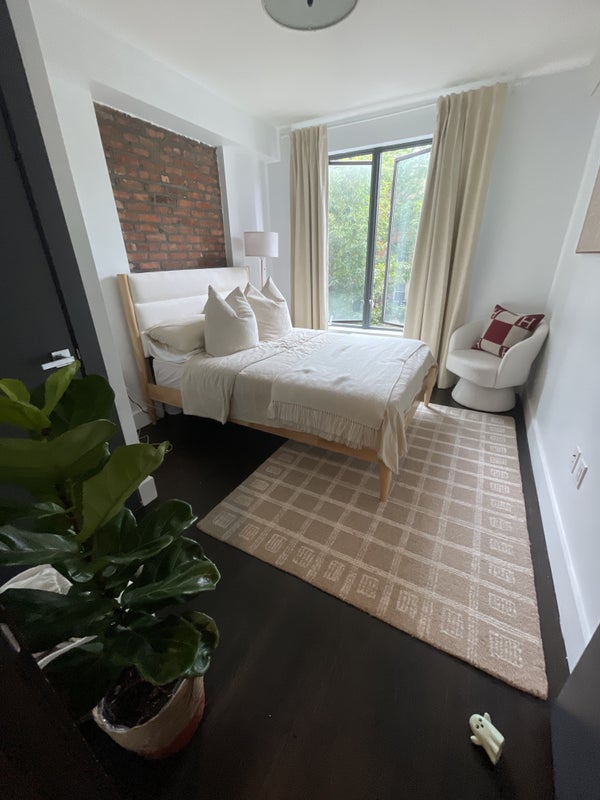 One roommate - Girl working corporate job out of apartment 5am-8pm. Clean modern appliances. Wood floor. Brick wall accents. Large windows. Closet built in. Fully furnished. Brand new mattress. Clean and modern bathroom. Area is lots of townhouses and families. Two blocks from the train station. Ten minutes from Williamsburg. Lots of trees.