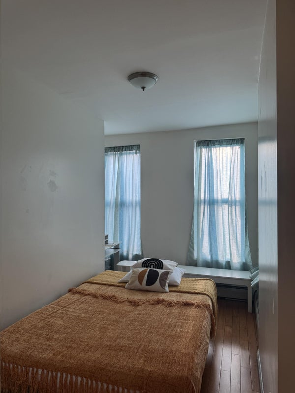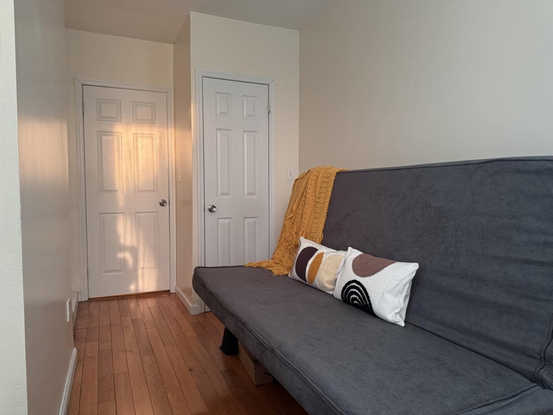 The room is cozy with 3 windows, tons of natural light, and a small built-in closet. It is currently furnished with a futon and a small desk, but these can be removed if necessary.