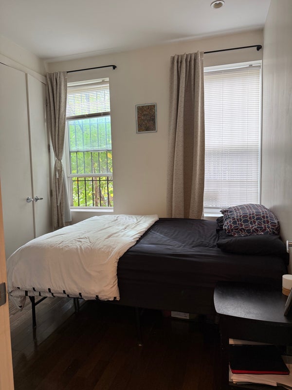 A beautiful 3 room apartment, spacious, a laundry washer and dryer in the building, quiet and full of good energy including office space, (420 friendly), five to six minute walk to the A, C, 2, 3, 4, 5 subway trains and the S shuttle to the Q and B. A diverse vibrant neighborhood, with a lot of restaurants, lounges and a large supermarket a block away.
