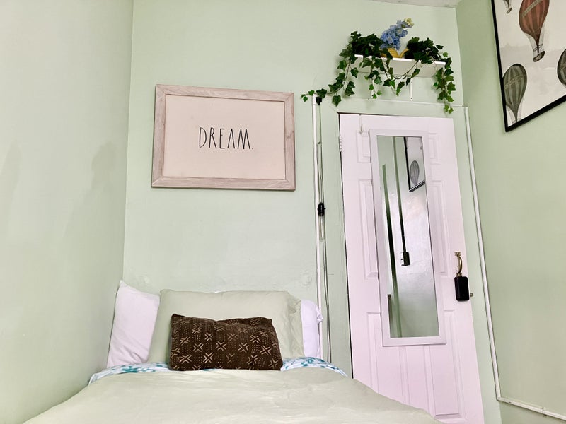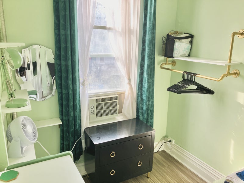 The Space: -Private Bedroom: twin bed, folding table desk, open built-in closet, and dresser -Includes AC and heat for your comfort -Shared 1.5 bathroom and kitchen -Third-floor walk-up (not ADA accessible) -Clean sheets and towels provided