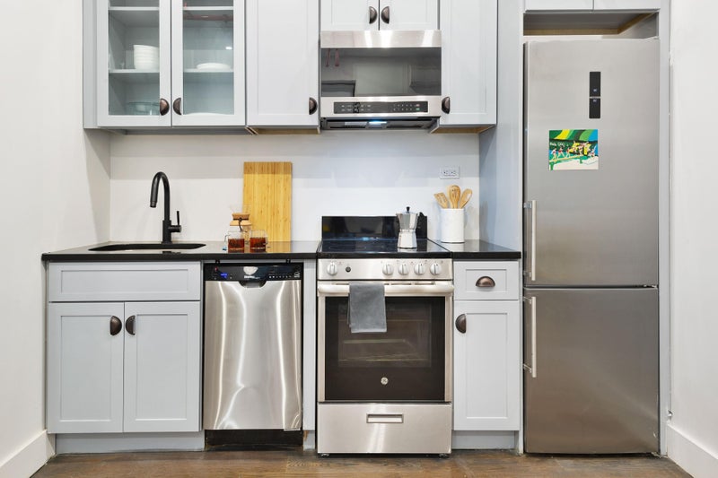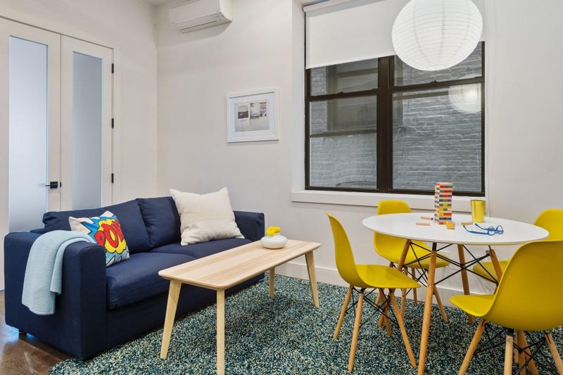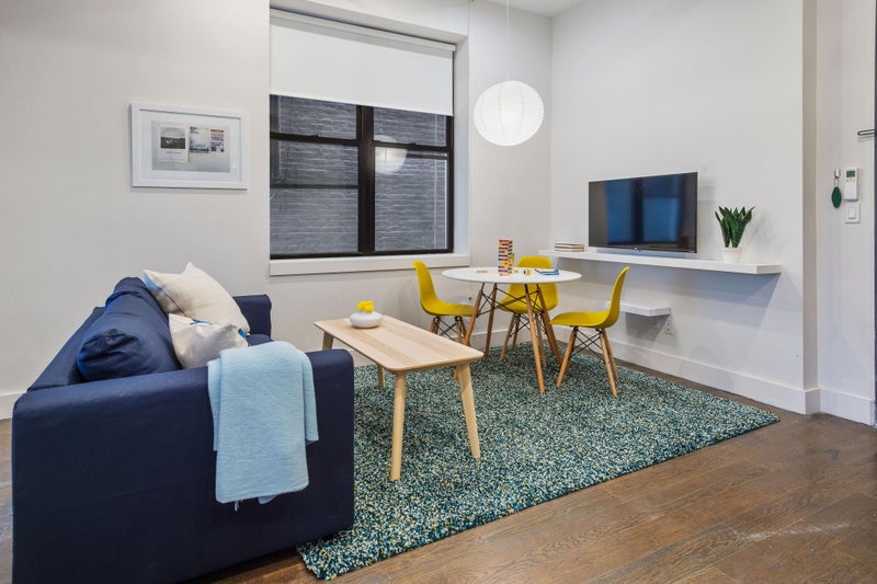 This all-inclusive studio unit exemplifies Brooklyn co-living at its finest. Bright, airy, and meticulously furnished by our interior design team, this space will quickly feel like home. This unit comes with a full size bed, brand new bedding and towels. The kitchen comes stocked with plates, cutlery, glasses and cookware. The common spaces in the apartment are expertly designed with community in mind and also feature smart TVs. All utilities and monthly professional cleaning of the common spaces are included in your rent making your transition to NYC as smooth as possible.