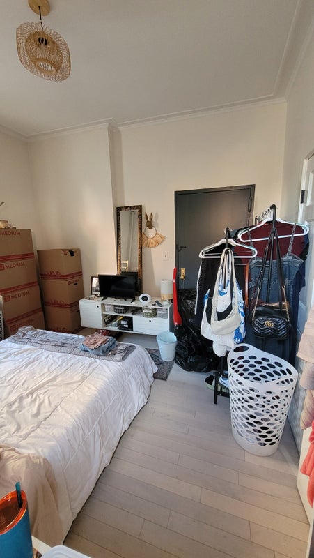 It’s on the first floor of a 4-story building, which has a washer and dryer in the basement (plus laundromats nearby for bulky items). The layout is unique — kind of a U-shape — with each bedroom on opposite ends for privacy. There are multiple entryways, but for safety and security, I ask that we use only the main entry door and keep the others permanently locked. Since the apartment is on the first floor, you’ll hear some foot traffic from other tenants coming and going, so if you’re a light sleeper or easily bothered by noise, this might not be the best fit.