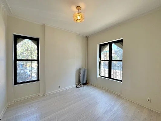 Because we’re on the first floor, all windows have security bars. In the summer, you’ll need a portable AC for your room, since the windows can’t accommodate window units due to the bars. The home office window is the only one that can fit a window AC, so if you have one it can fit there!