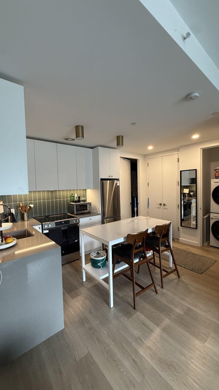 I’m a tech consultant & student looking for a chill roommate to talk over the second room in my 2 bed/2 bath apartment. The apartment was brand new when I moved in last summer, and has in-unity laundry, a dishwasher, and central air. The room itself fits a queen bed, and has a private attached bathroom. The building offers coworking space, a gym, lounge, two roof decks, and more.