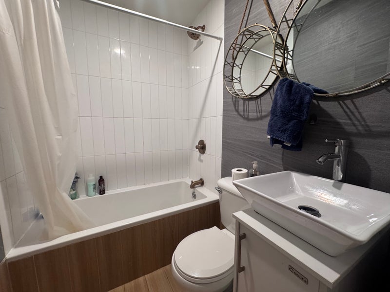 Spacious unit with lots of natural light, stainless steel appliances including a dishwasher, newly renovated bathrooms, and hardwood floors.