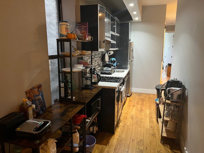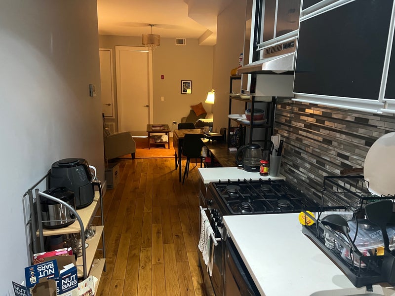 Apartment: $977/month + security + electric/gas/wifi, which has been up to $120ish/month pp in summer, paid upfront. Central air, dishwasher, paid laundry in building’s basement, unofficial roof access. Third floor walk up. Living room, kitchen, and bathroom are all furnished but you’re welcome to bring small stuff. While your bedroom gets plenty light, the common spaces do not. We have not had any significant issues with the apartment or landlord yet, maintenance requests are handled fairly quickly.
