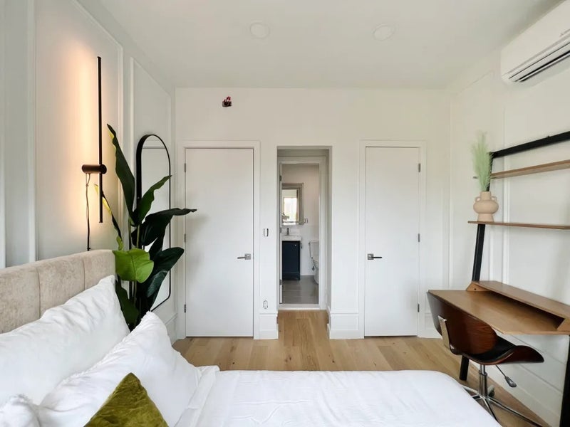 This private Queen room in 4 bedrooms 4 bathroms apartment, located in Prospect Lefferts is available on a flexible 1-18 month lease. Winthrop St – #331 w/ Private Bathroom - 100 sq ft Furnished room with a PRIVATE BATHROOM, FLOOR TO CEILING WINDOWS, 3rd floor, large closet, tons of natural light, washer/dryer downstairs. 4 Bathrooms. - Amenities include: movie theater, washer/dryer, rooftop, 2nd floor terrace, 1st floor back-yard, co-working area - Brand new building in Prospect Lefferts, Brooklyn. - 2 Minutes away from 2, 5 train and 15 minutes to Q, B, S train. 23 minutes from Manhattan. 4 blocks from Prospect Park. - Bedroom furniture includes: dresser, HD TV, bed, mattress, desk, chair, curtains, art, wall lamps - Winthrop st between Nostrand Avenue and New York Avenue, Brooklyn. - One person for the room, young professional. Current roommates are between 24 - 32 years old - Utilities are $140 per person - $30 monthly cleaning - There is a one-time room cleaning and administration cost of $175