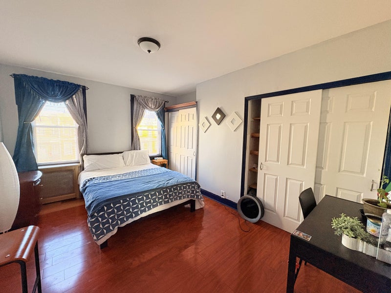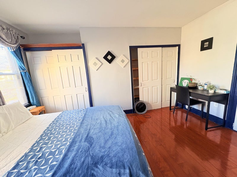 🏡 Room Features: ✔ Spacious & Bright: High ceilings and wood floors create an open, airy feel. ✔ Fully Furnished: Includes a full-size bed, bedside table, and a large wall mirror. ✔ Ample Storage: Two large closets for all your belongings. ✔ Quiet & Cozy: Ideal for relaxing or working from home.