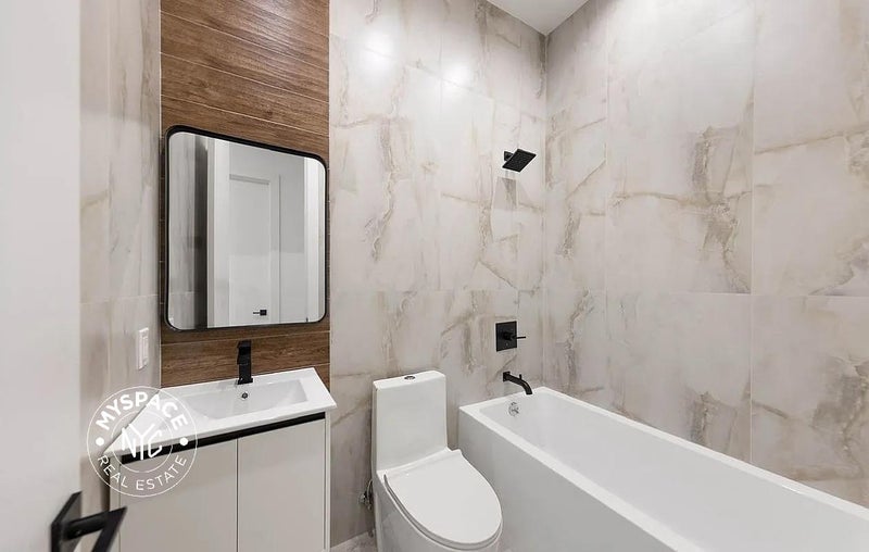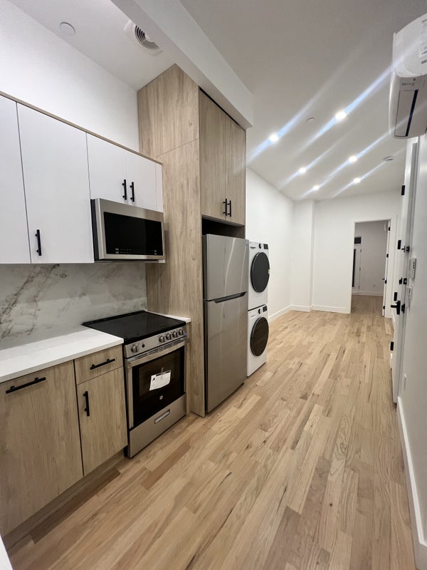 Features include: In-unit washer; dryer Central heating; cooling Hardwood floors High ceilings Modern kitchen with stone counters, dishwasher; built-in microwave Marble bathroom with soaking tub Private balcony (select units) Virtual doorman Rooftop, backyard, package room; bike storage.