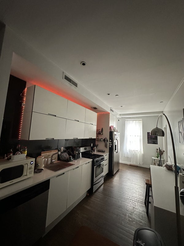 Queen size bedroom with many windows in East Williamsburg. 6 min walk from Montrose L and Lorimer J/M. This apartment is a three bedroom one large bathroom. It has washer and dryer in unit along with a dishwasher as well with central A/C. There is no closet in the bedroom, but there is a large outside closet provided as well if needed. We have a kitten so pet friendly is required, but they stay in one room and are rarely in communal spaces. We are young adults 25-26 and one roommate has their boyfriend living with them who is also rarely in communal spaces. Email with any questions! March 1st- August 1st, but we are flexible.