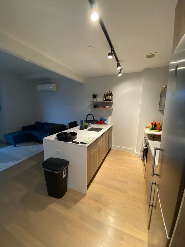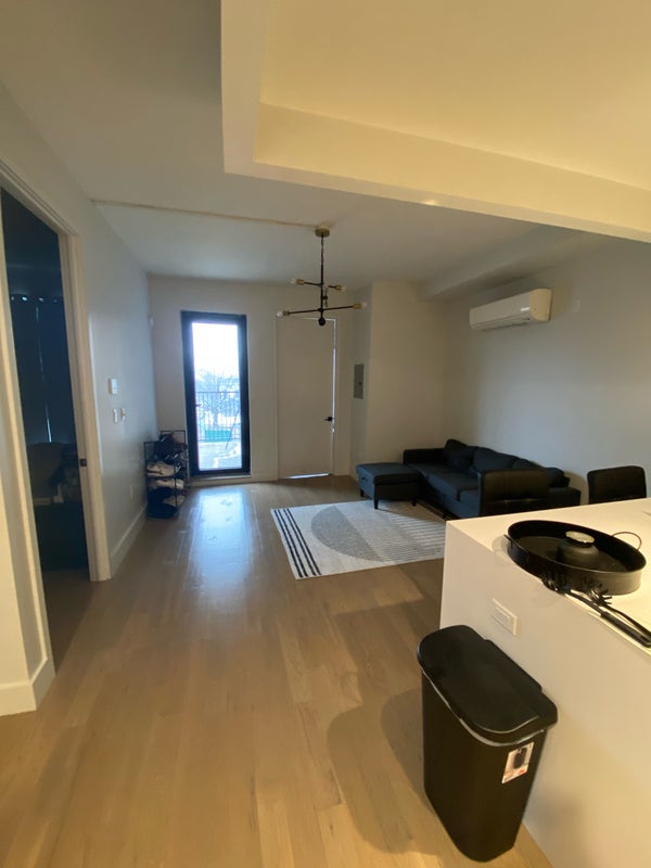The apartment is south-facing and gets LOTS of natural light. There’s even a balcony to sit out on when the weather’s nice! Dishwasher and separate A/C units included. Management is super responsive, and the building itself is regularly cleaned.