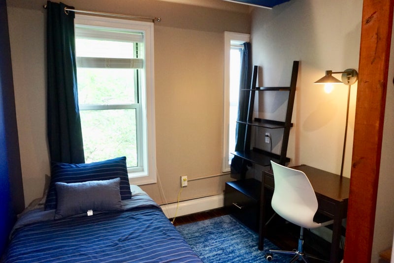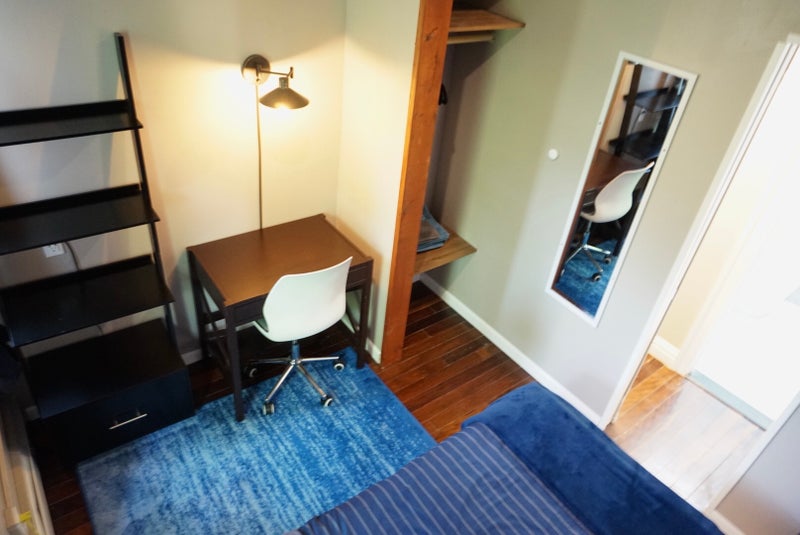 About the room: included is a twin-size bed with a comfortable memory gel foam mattress, mini closet plus storage area, desk, chair, lighting, towels, linen, with access to fully furnished common areas such as living room, dining area and kitchen. Share bathroom with another room and there is an additional common shared bathroom on the first floor of the house. We can consider both long or short-term. If interested, please send information about yourself. Thank you!